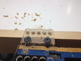 spacer (in this case, 3/8" BB plywood), the holes will be