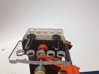 sandpaper grip), the screws, and the drill bushing mounted in the BB