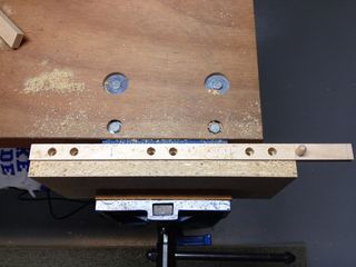 inserted six 1/4" dowels into my holes and I'm pushing the joint