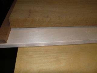 Many people are happy with their Rust sled. I didn't want to spend the time to make one. I know, I know, not that much to it. Still. And it looked heavy. I was hoping for something on the lighter side. I decided to try #2, and used a 12" wide by 60" long piece of BB plywood. I attached a 1/2" high by 1" wide piece of scrap to the front to act as a stop.