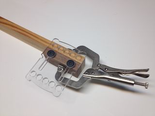 workpiece. I simply place my drill guide into each hole, pull