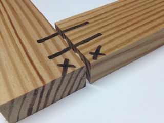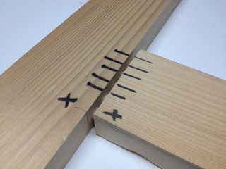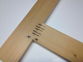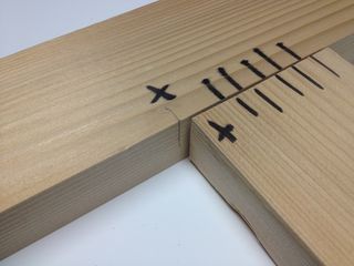 marks to show the orientation of the dowels, and to remind me which