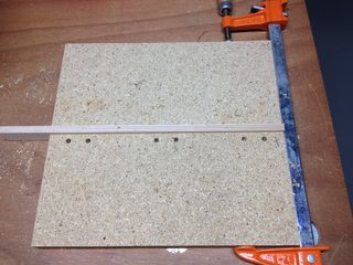 I've drilled my six holes. Again, the clamp is only holding the