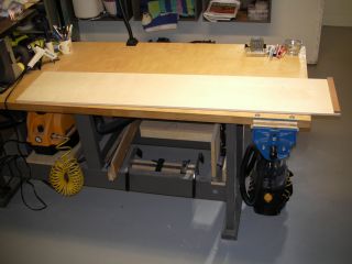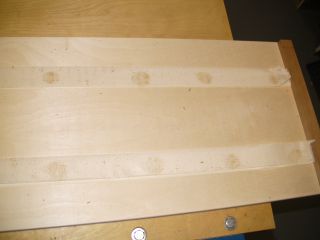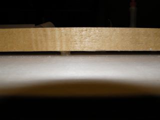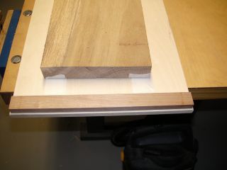 Many people are happy with their Rust sled. I didn't want to spend the time to make one. I know, I know, not that much to it. Still. And it looked heavy. I was hoping for something on the lighter side. I decided to try #2, and used a 12" wide by 60" long piece of BB plywood. I attached a 1/2" high by 1" wide piece of scrap to the front to act as a stop.